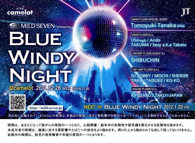 管理人様、告知失礼します。 12.28(水)MILD SEVEN presents「BLUE WINDY NIGHT」@ 渋谷 CAMELOT ☆★☆★☆★☆★☆★☆★☆★☆★☆★☆★☆★☆★☆★☆★ 私までメッセージを送っていただきゲストを取得していただくと、 [特別ディスカウントゲスト料金] 男性:2000円/2ドリンク 女性:1000円/2ドリンク にてご招待することができます。 ゲスト希望の方は、 タイトルに「12/28(水)ゲスト希望」 本文に「代表者の方のカタカナフルネームに人数を添えて」 私までメッセージを送ってください。 例:「12/28(水)ゲスト希望