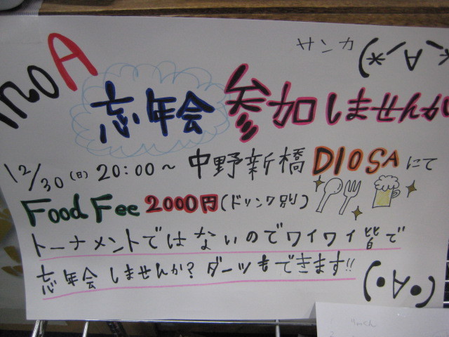 ※ドリンク代は3日とも各500円ずつ頂戴致します。