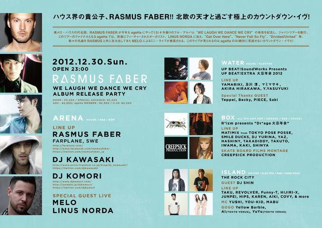 美メロ・ハウスの代名詞、RASMUS FABERが今年もageHaにやってくる!4年振りのフル・アルバム“WE LAUGH WE DANCE WE CRYの発売を記念し、ジャパンツアーを敢行。