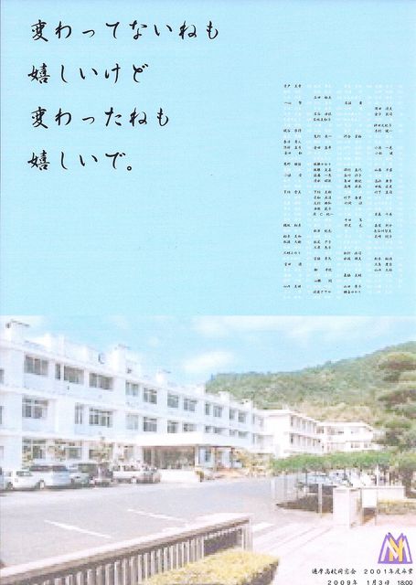 自分は平成13年度の卒業生の皆様 同窓会をやります! 近々はがきが届くはずです! 必ず返信ください☆