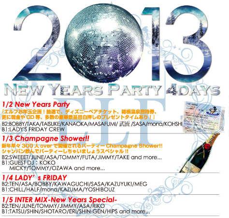 2013年のスタートに相応しく、豪華DJ陣集結!