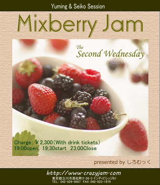 来年始まる新企画のお知らせです。 しろむっくの Mixberry Jam <Yuming & Seiko Jam Session> *毎月第2水曜日* 1/9(水)スタート ホスト:しろむっく(進行 Key. Pf.) チャージ:2,300円(ドリンク券付) 時間:19:00open 19:30start 23:00Close しろむっくさんの楽しいMCと、素晴らしいピアノに彩られた 素敵な素敵な水曜日 ユーミンと松田聖子さんの曲をセッションします ボーカリスト・プレイヤーさん募集! リスナー様、大歓迎! オリジナルカクテル&フードご用意してお待ち