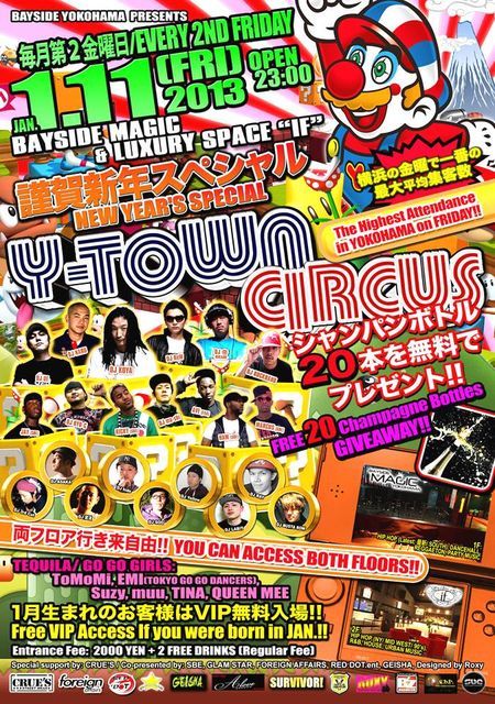 横浜最大級のクラブベイサイド横浜にて1月11日(第二金曜日)、Y-TOWN CIRCUSが開催!!