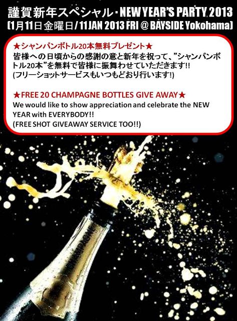 ニューイヤーズパーティー!! 謹賀新年スペシャル!! シャンパン20本分無料プレゼント