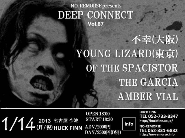 [DEEP CONNECT vol.87] 今池 HUCKFINN 不幸 YOUNG LIZARD OF THE SPACISTOR THE GARCIA AMBER VIAL 6:00/6:30 \2000/\2500(DRINK別)