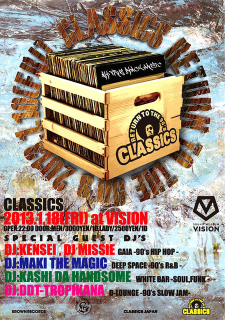 管理人様告知失礼致しますm(__)m 1/18(fri) 22:00 CLASSICS 「ゴールデンエイジ」の魅力が溢れる音空間 ヒップホップ黄金期と称される1990年代にフォーカスし、フロアを熱いミュージック・トラベルへ導いてきた“CLASSICS”が、前回の開催でついに7周年の節目を迎えた。それは、このパーティのぶれないコンセプトが、数多くのオーディエンスに支持されていることの証明といえるだろう。8年目のスタートとなる今回も、SOUTHPAW CHOP、K-BOOGIE、YO-GINといった不動のレジデントDJ陣が、スキルフルなプレイを披露。さらにゲストに迎えら