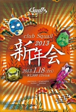 club Squall 2013 新年会 psytrance / progressive / techno / minimal Date: 2013.1.18(fri) OPEN / START : Place:(仙台市青葉区大町1-4-1 4 B1F Entrance Fee(入場料): 1500YEN_1D 【DJ's】 Azuma (GRASSHOPPER RECORDS / PSY-ZEN=SEN) Buri (LIBERARHYTHM / PSY-ZEN=SEN) Kenji (Dimlight) Takumix (LIBERARHYTHM / ten) Yu (Dimlight) Yuima-ru (PSY-ZEN=SEN / ten) Yuji (Dimlight) 【VJ's】 Ikameradoragon (seven senses / ten) Ichi (ten /Assault Star / -022) 凸DECO凸