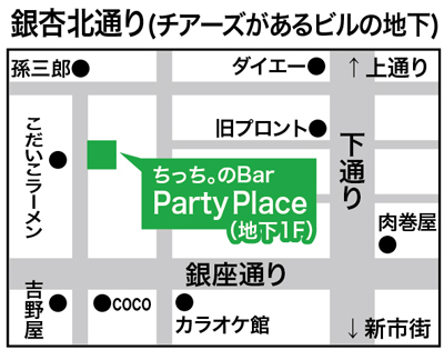 【こちらは第46回縁会の2次会トピックです】 最近2次会をトピックを立てることがなくなっていましたが、 久々に立ててみました 1次会はもうすぐ定員埋まりそうですね おかげ様で大盛況で、ありがとうございます 今回の2次会は、縁会参加者は常連さんも多い、 おなじみ“パーティプレイス”でします 1次会のお店の目の前なので、そのままの流れで行っちゃいましょう 詳細============== 場所:パーティプレイス 時間:22:00すぎスタート 会費:男女とも2,000円 ★2時間飲み放題です★ ※場所