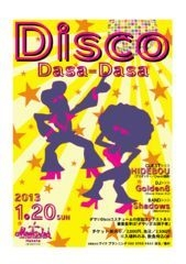 70S’〜80S’のキラキラ輝く記憶がよみがえる!? 2013.1.20(日曜) 博多Memories(旧 KENTOS) OPEN / 13:30 START / 14:00 チケット 前売り/2000円 当日/2500円 ※入場料のみ、飲食持込OK 《GUEST》 HIDEBOU(プロダンサー/Chacott講師) 《DJ》 Golden8(mixi坂本金八郎) 《BAND》 Shadows 《チケット》 前売り/2000円 当日/2500円 ※入場料のみ、飲食持込OK ShadowsによるDisco Soundのステージ・DJ Golden8がスタンバイし、フロアーを盛り上げます Disco Danceの伝道師
