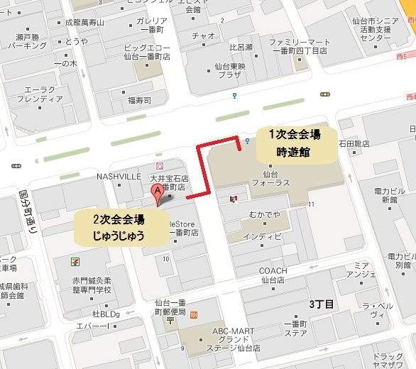 注意 ※参加希望者は必ず下記全文の確認をお願い致します。 ※内容は随時更新していきますので、お手数ですが都度ご確認ください。 開催日時 平成25年1月20日(日) 集合時間場所 11:30まで フォーラスアーケード側付近 1次会会場 カラオケ&パーティー 時遊館 フォーラス店 宮城県仙台市青葉区一番町3-11-15 http://www.atom-corp.co.jp/brand/shop.php?shop_no=1465 時間 12:00〜18:00 会費 1,000円/人 ※今回は『1部屋での開催』となります ※今回は『コスプレを解禁』します(以下