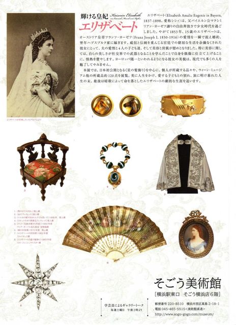 1865年にヴィンターハルター(Franz Xaver Winterhalter)によって描かれたElisabethの肖像画の、「星の髪飾り」の実物を初めて公開。 福岡市博物館 4月7日(土)〜6月17日(日) 午前9時30分〜午後5時30分 一般=1300円(前売り1100円)/高大生=1000円(前売り800円)/小中生=600円(前売り400円) http://rkb.jp/elis/index.html 日本橋三越本店 新館7階ギャラリー 8月8日(水)〜8月20日(月) 午前10時〜午後6時30分(最終日は午後5時まで) 一般・大学生=1000円/高校・中学生=800円(小学生以下