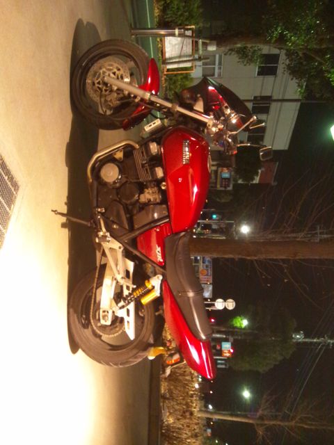 管理人様、貴重なスペースお借りします。 ・メーカー名:YAMAHA ・車名:XJR400 ・年式:平成5年(1993年) ・車体番号:4HM今度見てきます(下4桁は伏字で構いません) ・2st/4st:4st ・排気量:400 ・色:ワインレッド ・自走: 可能 ・走行距離:確か26000km前後です。今度見てきます。 ・車検/自賠責の有無:平成24年10月 ・事故歴:立ちコケ2回スリップダウン1回(前オーナーのは分かりません。) ・キズや不具合の有無: つい先日スリップダウンしてしまってタコメーターカバーが割れてしまいました。 そのスリップダ