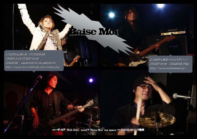 1/23(Wed)四ッ谷 OUTBREAK OPEN18:30 START19:00 CHARGE adv\1500+D/day\2000+D http://www.hor-outbreak.com/index.php 出番順は判り次第、お知らせします。 よろしくおねがいします。