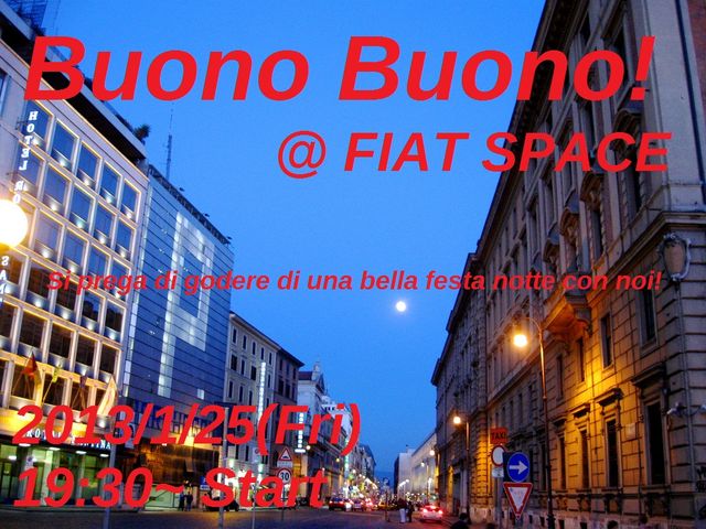 皆さま、あけましておめでとうございます(ちょっと遅くてスイマセン) 年明けて、寒い日も続いていますが・・・如何おすごしでしょうか? 久々に、イベント立て失礼します さて、今年 新年からおにゅーのパソコンを買って知的さを全力でアピールしている 我らがカフカさん と 私 かさが組みまして来週1/25(金)の夜に青山一丁目のFIAT SPACEというところで新年会っぽい?イベントをさせて頂くことになりました その名も カフカサ会 もとい・・・"Buono Buono!(ボーノボーノ