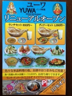 名古屋インドカレー部の皆さま 2013年、あけましておめでとうございます。 今年も皆さんと美味しいインドカレーを食べていきましょう!! 第46回 名古屋インドカレー部 案内 2013年1月25日(金) 「ユワ」 中川区西日置2-14 (旧 ガンダーラ2号店) 夜19:30のお店の前で集合です。 人数把握のため 参加ご希望の方は下記のコメント欄に書き込みください。 皆さんの参加をお待ちしております。