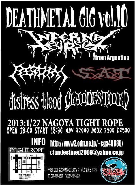 2013/1/27 [ACT]INFEREAL CRUSE(アルゼンチン) RETURN(東京) CLANDESTINED distress blood SxAxT 18:00open 18:30start 料金:前売り\2000 当日\2500(共にD別\500)