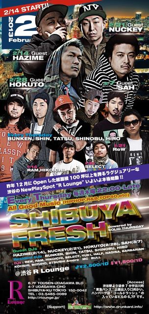渋谷 R Lounge 6Fにて《 FRESH 》が開催されます。 エントランスにて 『トシキ』のguestで, 『フレッシュ』 とお伝え頂ければ何名様でも下記のGUEST料金で入場できます。 また個別のguestも受け付けていますので気軽にメッセージください。 ※必ず『名前』『人数』を書いてメッセージください。 昨年12月にOPENした2フロア・総面積100坪以上を誇るラグジュアリーな渋谷のNewPlaySpot "R Lounge" が2/14(木)満を持して本格始動!! 毎週木曜日のニュースタンダード"SHIBUYA FRESH"!! 数年に渡り六本木を席巻し続けたM