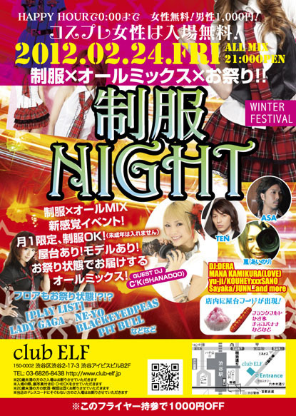 超豪華なゲストが出演で金曜日渋谷一の盛り上がりを見せる FLFの「PARTY FRIDAY」 毎月第4金曜は制服ナイト 過去の写真です http://ameblo.jp/ikarashi1983/entry-11081253209.html コミュも入ってください! http://mixi.jp/view_community.pl?id=5782604 女性のお客様に限り制服&コスプレor持参でエントランスフリー(男性はディスカウント) SPECIAL GUEST ヨーロッパ全土で大きな話題house nationでも活躍中のSHANADOOのC'K DJにはメジャーヒット曲をリ