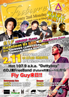 管理人様書き込み失礼します。 2/11(Mon)[FUTURE] ---------------------- エントランスにて、 【シノブのゲストでアトラス】 と、伝えて頂けると 男性\1000/0d 女性\1000/3d にてご入場出来ます。 ---------------------- 2/11(Mon)[FUTURE] (HIPHOP R&B REGGAE) Open 22:00〜 MEN:2,500YEN/1D LADIES:1,000YEN/飲み放題 GUEST DJ FLY-GUY(from ATL) RESIDENT DJ: SAH ■access: 渋谷駅ハチ公口を出て109を目指します。 左手道玄坂を上って行きしばらくすると右側に交番が見えてきます。 そのまま直進し