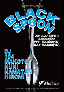 ■2013.2.15(Fri) 22:00open [BLACK SPOON] R&B. HipHop. Classics DJ> 104. MAKOTO. KUNI. NAMATAME. HIROMI FEE: W/F \2.000(1d) : DAY \2.500(1d) ■BLACK SPOON 今では大人になってしまったかつて遊び人達のたまり場になっていた"BLACK SPOON"!! サーファーからHIPHOP HEADSまでひたちなか市に知る人ぞ知る"箱"があったのをご存知でしょうか? 2月より開催のBLACK SPOONでは当時かかっていた曲を中心に展開いたします!! 夜遊び大好きなお客様から、これから夜遊びを始めるお客様まで是非お楽しみください!! ■前売りチケット(ADM)・フ