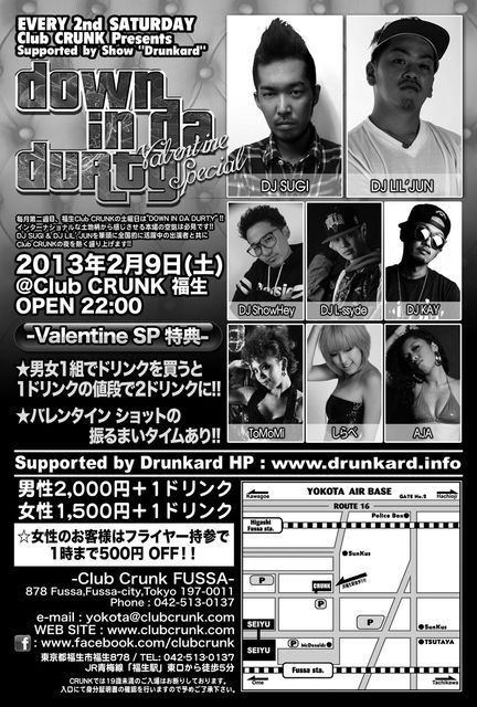 毎月第二週目、福生Club CRUNKの土曜日は"DOWN IN DA DURTY" !!