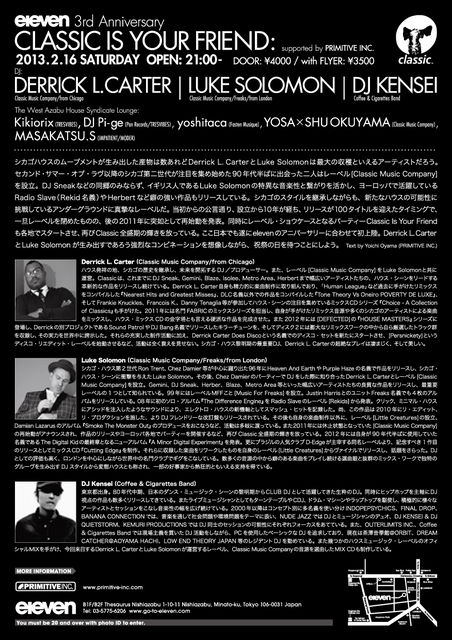 シカゴハウスのムーブメントが生み出した産物は数あれどDerrick L. CarterとLuke Solomonは最大の収穫といえるアーティストだろう。セカンド・サマー・オブ・ラヴ以降のシカゴ第二世代が注目を集め始めた90年代半ばに出会った二人はレーベルClassic Music Companyを設立。DJ Sneakなどの同郷のみならず、イギリス人であるLuke Solomonの特異な音楽性と繋がりを活かし、ヨーロッパで活躍しているRadio Slave(Rekid名義)やHerbertなど癖の強い作品もリリースしている。シカゴのスタイルを継承しながらも、新たなハウ