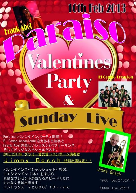 "JIMMY BOSCH"&Orquesta "EL COMBO CREACION"&Dancer "FRANK ABEL" Valentine SALSA LIVE Party in PARAISO Roppongi