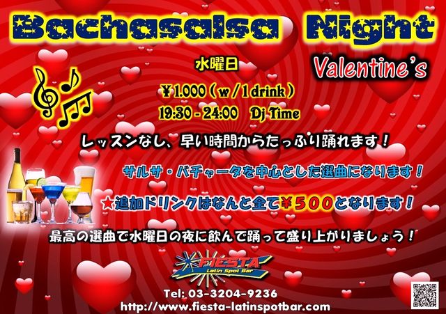 サルサ・バチャータを中心とした選曲になります追加ドリンクなんと全て500円となります!