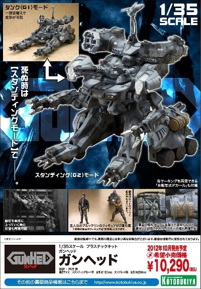 コトブキヤさんがやってくれました。 あの「ガンヘッド」を1/35スケールでモデル化、10月販売予定です。 嬉しいのでコンペやろうと思います。 戦車好きの方も、手足がないとダメな方も、 どちらもOKの懐の広いナイスモデルです。 10月発売ですのでコンペは3ヶ月後くらいの1月で。 皆様のご参加お待ちしてマース。