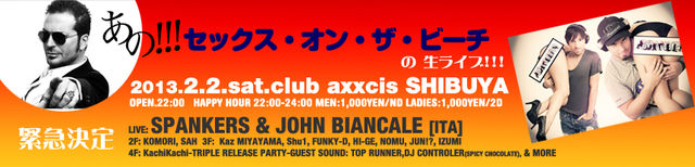 ★★★緊急来日、生『SEX ON THE BEACH』です!!GUEST LIVE SPANKERS&JOHN BIANCALEです!★★★