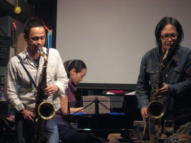 スペシャルライブです 岡淳さんの、人柄そのままの暖かいサックス。 森田修史さんの、思いの丈を音に乗せたサックス。 2管のサックスが、会話し、バトルし、ハモります。 ピアノの野本晴美さんは、芸大の作曲科を中退してジャズに転向した人です。聴いてるだけで楽しくなる愛くるしいピアニストです。 スペシャルライブは、前売か予約の方が少しお得です。どしどしご連絡ください。 森田修史(Ts) http://www.geocities.co.jp/MusicHall/1773/index2.html http://mixi.jp/show_friend.pl?id=1035379