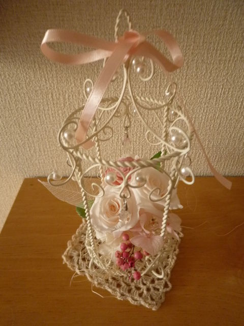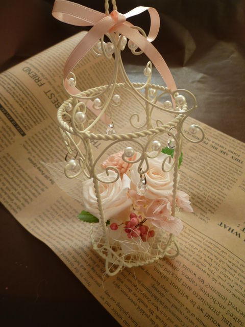 あけましておめでとうございます 今年もみなさま、よろしくお願いいたします Happy Leafのプリザーブドフラワーのレッスンも、4年目を迎えました 新年最初のアレンジは、 淡いニュアンスカラーだけを集めた優しい印象のアレンジです 白のアイアンに、キラキラのクリスタルが揺れて、女子度上がりそうなアレンジですよ プレゼントやご自宅用に、 ふんわり可愛いアレンジで気分を盛り上げてみてはいかがでしょうか プリザーブドフラワーとは、生花を特殊加工しているもので お水をあげなく