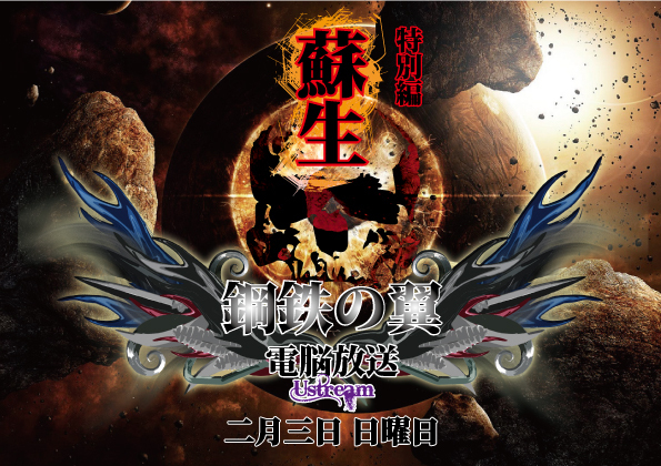 2月3日(日)【鋼鉄の翼 特別編:蘇生】 電脳放送(Ustream)にて開催!! [開始予定時刻] 21:30〜 [終了予定時刻] 0:00 [DJ] 鋼鉄の翼:初号機 DJ RYOTA and サポートDJ(予定) [放送場所] http://www.ustream.tv/channel/pivote-music 1月26日に、お届け出来なかった世界観 これが【最終章】 防壁など、通用しない。