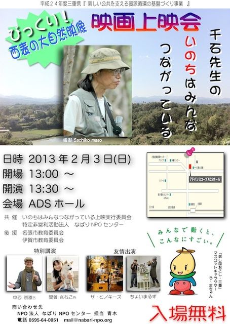 わくわく動物ランドやどうぶつ奇想天外など多くのメディアに出演されていた千石先生は動物学者として国内外でも活躍されていました。その先生が生前にドキュメンタリー映画を撮られていてそれが第53回科学技術映像祭部門優秀賞『自然・くらし部門』を受賞され関係者が各地を回って上映会を開催しています。今回、有志が集まりその映画が上映されます。 舞台は、多くの自然が残されている生態系豊かな西表島。様々な動植物を通していのちのつながりを先生自ら紹介、教えてくれています。ぜひたくさんの方にきていただけたらと思います。