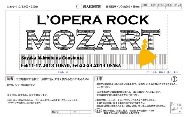 ロックオペラモーツァルトに秋元才加さんが出演されるということで、ファンから何か記念になるものをプレゼントできないか。 という提案の元、このコミュニティーを中心に話し合い、アンケートでデザインを決定しましたが、この度無事にオリジナル手ぬぐいを発注いたしました。 発注枚数は45枚です。 そのうち2枚は才加さんにお渡しします。そして1枚は不測の事態のための予備とします。 一枚当たり724円ですが、才加さんにお渡しする2枚分はみなさんからの気持ちということで割り勘にしたいと思います。 なので、一枚あたりの金額を 手ぬぐ