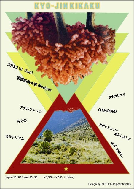 ■2月10日(日) 狂人企画 vol.46 open18:00/start18:30/fee¥1500(+1drink¥500) Live:らぐの / タナカジュリ(東京) / CHIMIDORO(東京) / アナルファック(東京) / モラトリアム(ソロ) / ポゼッション+あたしよしこ ★ライヴ 18:30 :らぐの 19:15 :タナカジュリ(東京) 20:00 :CHIMIDORO(東京) 20:45 :アナルファック(あなるちゃん+ララくん)(東京) 21:30 :モラトリアム(ソロ) 22:15 :ポゼッション+あたしよしこ