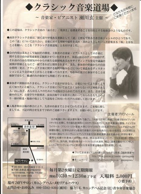 クラシック音楽道場 表参道の中心地からちょっと離れたところにある 素敵な木造の一軒屋。 居心地の良い素敵な空間。 瀬川さんの素敵な音楽と楽しいお話を聴きにいらっしゃいませんか? 瀬川さんのホームページより転記をさせていただきました。 ◆ドビュッシー生誕150年記念ピアノ独奏曲全曲演奏プロジェクト◆ 〜続編〜 〜ご挨拶〜 先日2012年12月12日、お蔭様で一年を通じてのドビュッシー ピアノ独奏曲全曲を演奏す