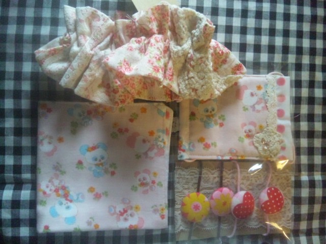 今回福袋企画があります。kikoro(BAMBINO)ではお子様むけワンコイン(500円)のセット(シュシュ2個クルミボタンゴム4個ハンカチ、マスク、ヘアピン)をご用意してお待ちしています。