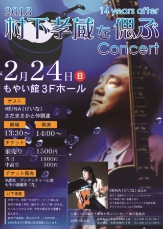 2013年2月24日(日) 水俣市もやい館3階 開場 13:30 開演 14:00 前売り券 1500円 当日券 1800円