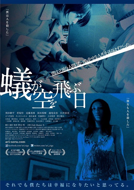 野火明監督の最新作「蟻が空を飛ぶ日」が3月9日(土)から新宿 K's cinemaにて2週間限定レイトショー公開されます。 それにさきがけて、試写会を開催させていただきます。 ゆうばり国際ファンタスティック映画祭2011正式出品。ひろしま映像展2011グランプリ受賞。ヒューストン国際映画祭2011金賞受賞。など国内外の映画祭で「先の見えない展開」「スピード感溢れる物語」と絶賛された傑作!監督は『ダイヤモンドの月』で映画界を震撼させた野火明。17年ぶり、待望の新作は、非情な世界に生きる男女のせつないラブストーリー。 出演者 黒田耕平