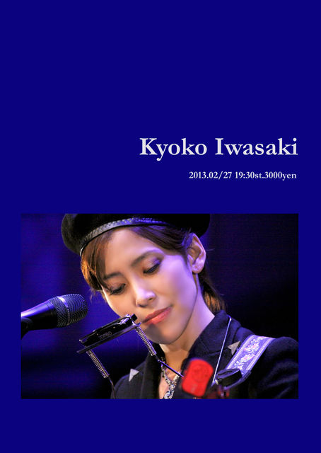 2/27(水) いわさききょうこ いわさききょうこ/vo.g 常富喜雄/g SHOWTIME:19:30st. OPEN:18:30 CHARGE:\3000 フォークとは無縁の時代に生まれるも、類まれな音楽性と言葉、そしてルックスまでが、かつての時代のフォークそのものと言われ、戸惑う女“いわさききょうこ”水戸初登場です!サポートミュージシャンには「猫」の常富喜雄!