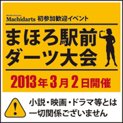 町田でダーツを楽しむ集まり マチダーツ創立7周年記念企画 まほろ駅前ダーツ大会開催! 場所:バグース町田 日時:3月2日 集合:12時〜13時 開始:13時〜17時 参加費:無料 ※但しゲーム代・ドリンク代は別途 今回のイベントは、初参加の方と 初心者〜Rt.5までの人を中心に、 それ以外の人は支えてください。^^ まずはレベル順の4チームに分けます。 もし友達と同じチームがよければ 最初のエントリー時に教えてください♪ 13時〜14時はそのチーム内で チームワークを深めるべく練習タイム。 14時〜17時はチーム対抗