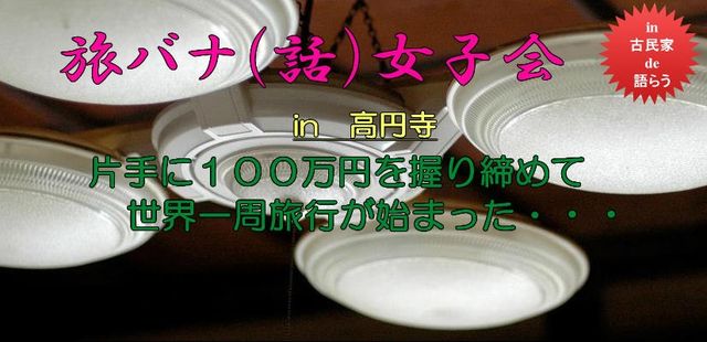 片手に100万円を握り締めて世界一周の旅が始まった! 第1回イベントワーク〜旅バナ(話)女子会〜 旅が好き! 世界一周もいずれは・・・ ドラマの大前春子のように、スーパー派遣社員として働いて得た金銭を、旅の資金へと投入する・・・。そんなドラマが過去にありましたね! そう、今は学生でなくとも社会人でもちょっとした旅ができるのです。 どうせ・・・、でも・・・と思う前に、旅の達人者の口から語られる異国の体験・文化風習の違いなどの異文化をまじかに聞いてみようではありませんか♪ プロフィール〜花さん〜