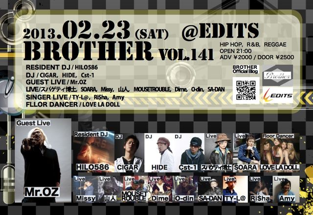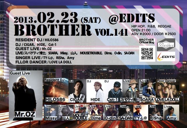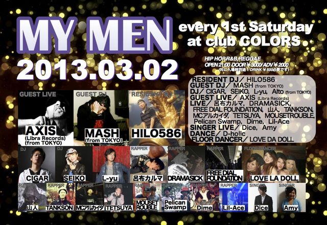 OPEN 21:00/DOOR ¥3000/ADV ¥2000(共に入場時別途1DRINK ¥500必要です)