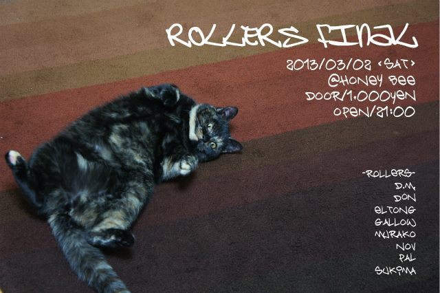 今日が最後のローラーズ! これまで遊びに来てくれてどうもありがとうございました! 音楽はもちろんですが、来てくれるみんなとの会話が楽しかったです! 今後ROLLでパーティをやる予定はしばらくありません! というわけで、ぜひ本日遊びに来てください〜!! 「ヒップホップ」の精神をベースにした色んな音楽がかかります! 【ROLLERS FINAL】 2013/03/02(sat) @HONEY BEE DOOR/1,000yen OPEN/21:00 -dj- D.M. Flatwell eltong gallow 零躯 and more..