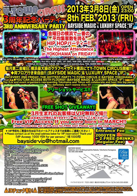横浜最大級のクラブベイサイド横浜にて3月8日(第二金曜日)、Y-TOWN CIRCUSが開催!!