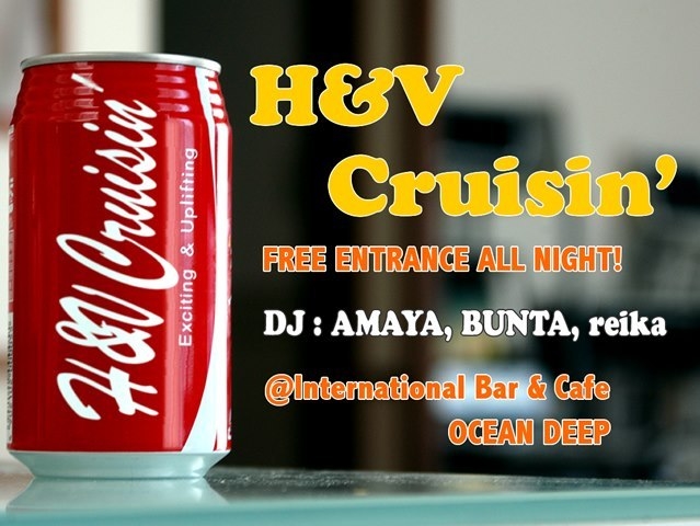 さて、16日は 【H&V CRUISIN'】act 33! @OCEAN DEEP!! 開催です!! いつもの様に、基本的にALL MIXでPLAY! MAIN STREAM,R&B,HIP-HOP,SOUL,ROCK,J-DANCE・・・でもリクエストOK! そして、バースデーも! もちろん当日は、私たちが選曲し、MIXした『MP3』データをpresent! (USBフラッシュメモリー忘れずにNe) 今回は♫BUNTA MIX! 【EVENT DATA】 3月16日(土) 22:00〜 PLACE: International Bar & Cafe 【Ocean Deep】 ADDRESS: 千葉県千葉市中央区新千葉2-1-5 JR千葉駅西口(ホームの