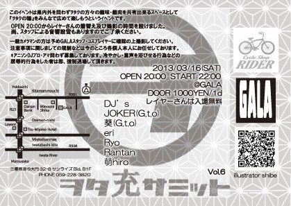 仲良しのDJ JOKERやDJ葵ちゃんも出てるイベントです! 今回はうちの旦那・双月彩さんも出演します(*・ω・)ノ 夕莉はホァンちゃんのコスプレするよーっ(*´Д`*) みんな来てねっ♪ ヲタ充サミットVol.6 2013年3月16日(土) オープン20時 スタート22時 DOOR/1000yen/1d レイヤーさんは入場無料! 場所:GALA 住所:三重県津市大門32-8サンライズBld,B1 TEL:059-228-3820 このイベントは県内外を問わずヲタクの方々の趣味・趣向を共有出来るスペースとして【ヲタクの輪】をみんなで広めて楽しもうというイベントです。 オープン20時か
