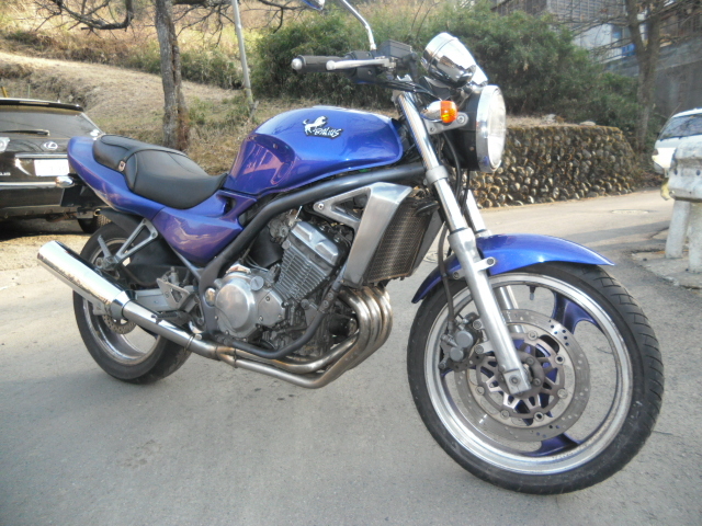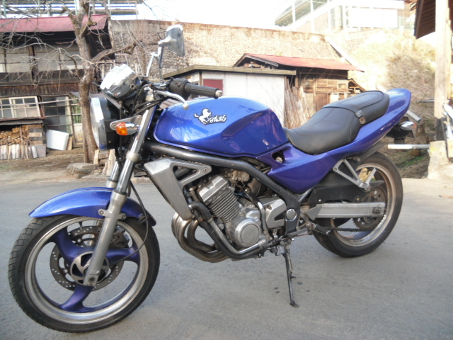 バリオス 実動 規制前45PS 自賠責付 青紫 バリオス45PS規制前の?型です。玉数が少ないカラーです。画像では青っぽく見ますが、実車はもう少し紫に近い感じです。ミラー以外はフルノーマル車です。実動、書類付、自賠責も付いております。走行17700km。始動性も良く、吹き上がりも良好です。マフラーに傷があります。現在税金の関係で一時抹消しております。発送も可能です。東京あきる野市からです。価格は14万です。
