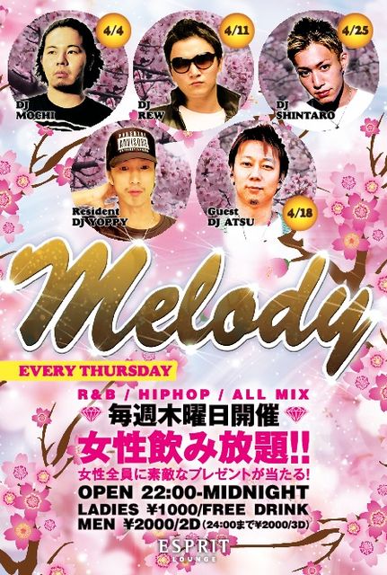 管理人様告知失礼します。 MELODY@六本木ESPRIT ---------------------------------------------------- ★ゲスト料金★ ¥MEN 2000/4D ¥LADY1000/freedrink+SPECIALインビテーション ※自分にメッセージ頂ければゲスト料金にて入場できます。 『代表者名+人数』を添えてお気軽にメッセージください☆ 連絡がすぐに折り返せない場合もございますが、必ずお返事は返しますのでよろしくお願い致します。 もしメッセージができない、急に行きたくなった方は エスプリットラウンジのエントランスにて ★☆★☆★☆★☆★☆★☆★☆★